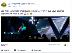 Nous avions également fait appel à une agence de relations presse qui nous a décroché la rédaction de deux articles aux lendemains des Yellow Vibes : Le Progrès et Intermédia. Ces articles ont été relayés sur les réseaux sociaux pour une mise en avant optimale de La Mobylette Jaune.