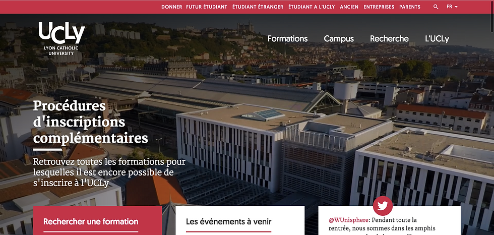 Pendant mon CDD d'un an à l'UCLy, j'ai eu comme mission la refonte du site web institutionnel ainsi que des sites satellites.